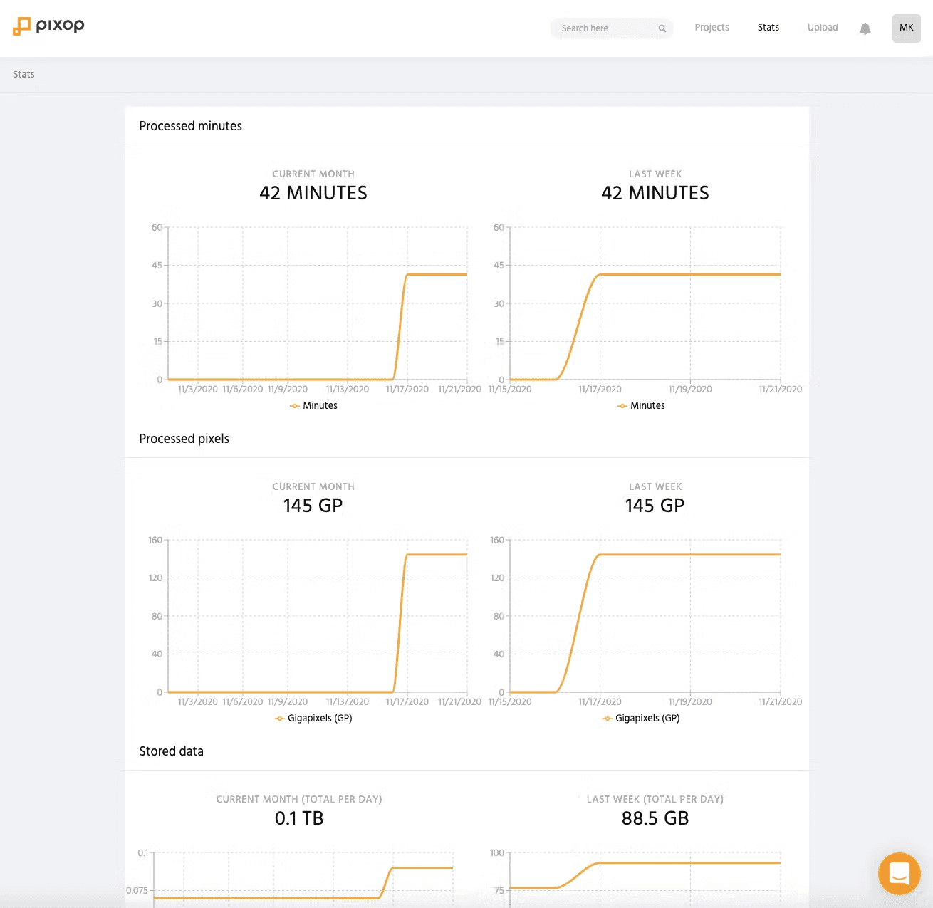 Pixop: Dashboard view